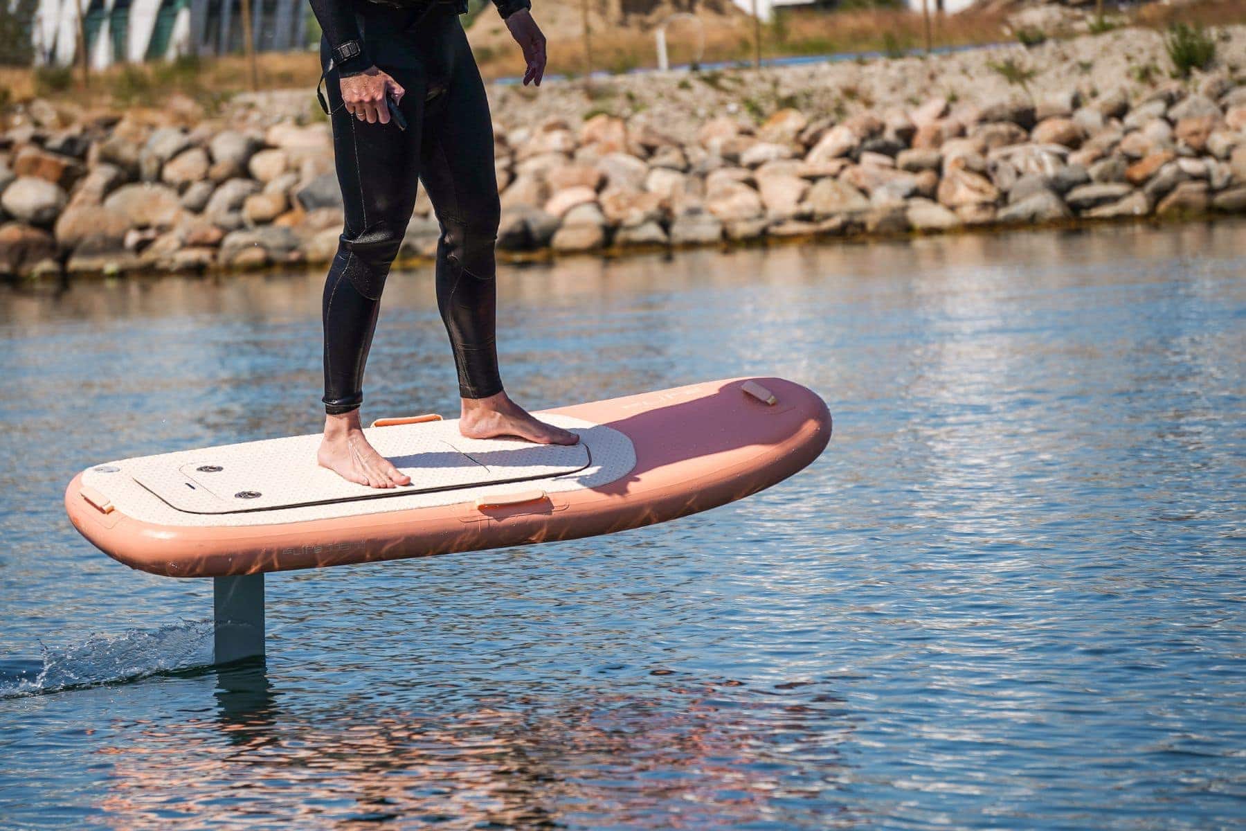 With a PVC diaphragm around the core unit where the battery and electronics sit, the Fliteboard Air is the best inflatable efoil. It’s also one of the best beginner efoils. Other notable brands include CabraTec and Mantafoils.