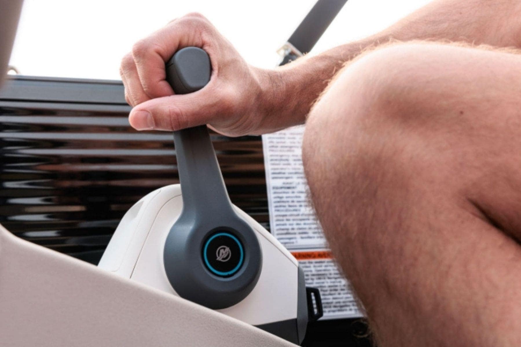 The Avator looks slightly different from other 1 kW outboards we’ve seen. It’s got a traditional-looking outboard cowl that is distinctly a Mercury. To get the battery out for charging, you lift the cowl and lift it out. Unlike Torqeedo and ePropulsion, removing the battery does not make the engine smaller or more portable. It does shave down the weight you have to carry, though. You can also remove the transom bracket to shave off a few pounds.
