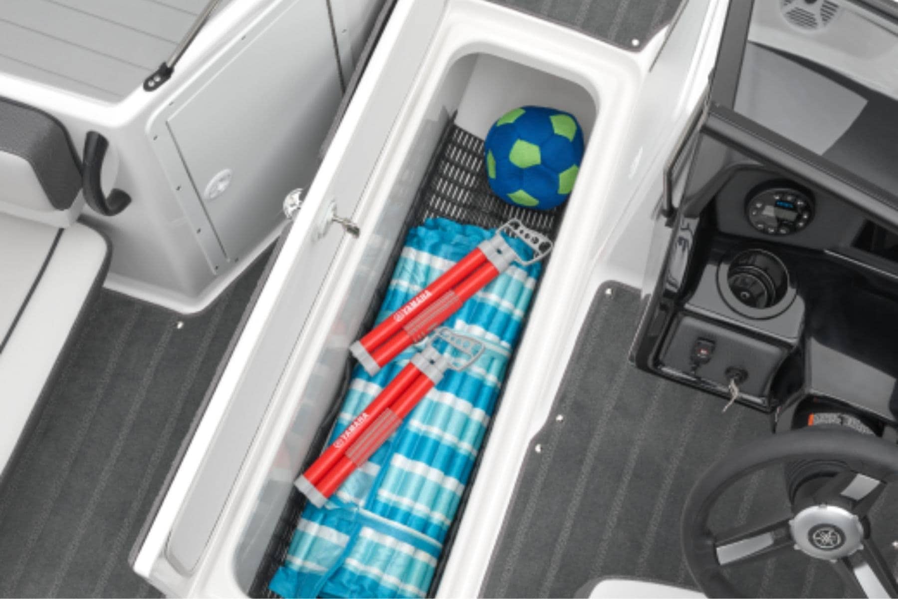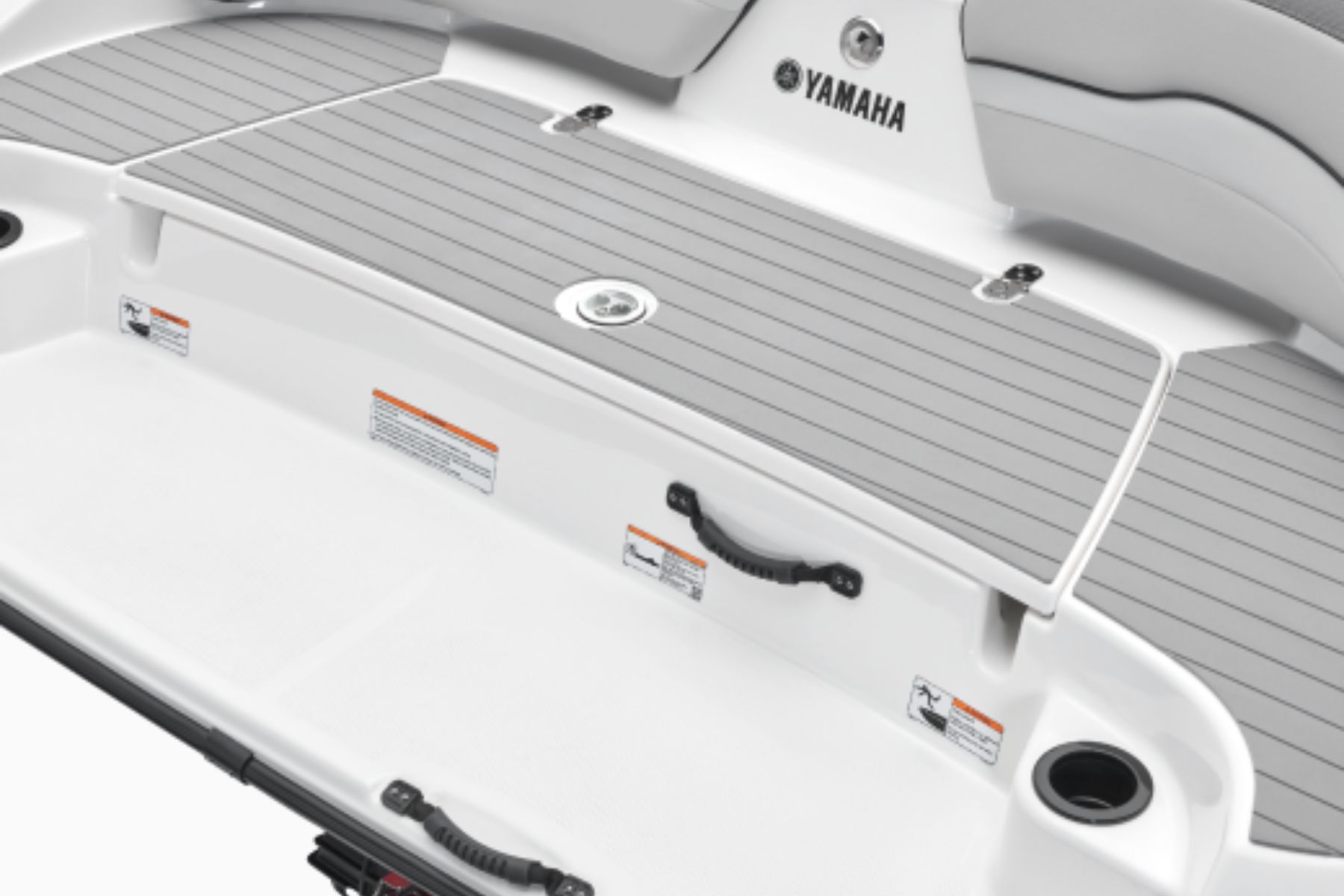 Yamaha’s entry-level watersports jet boat is the AR190. Built on the company’s versatile 19-foot hull, the AR190 has everything you need to start tubing, wakeboarding, or skiing. It comes with a basic forward-swept tower and Yamaha’s amazing swim platform. You can also add Yamaha’s optional Wakesurf package, which includes 400-pound water ballast tanks and pump.