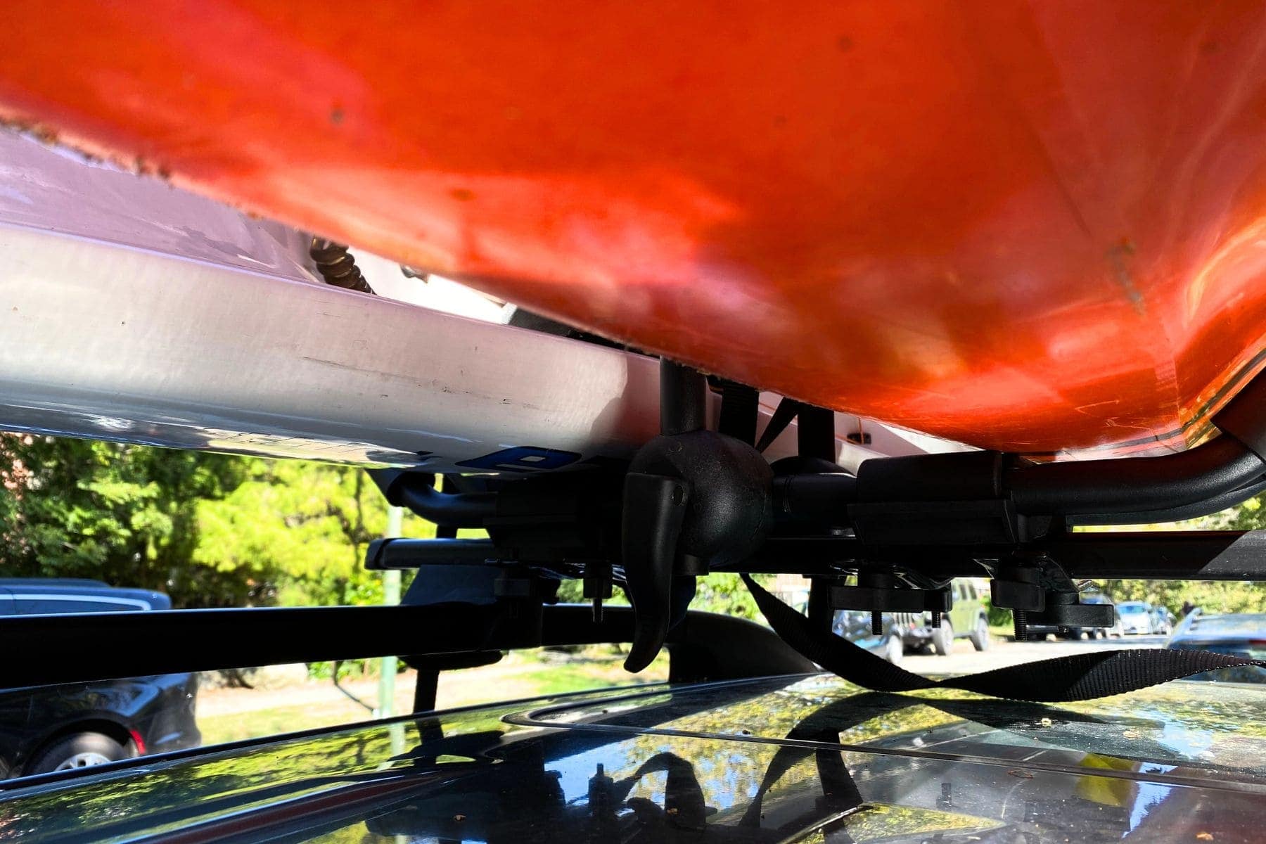 If you don’t find the lift assist system installed into the rack, you will have to lift the equipment yourself. Check for the kayak to be free from water and other gear before loading it onto the roof. You can place a sheet on the car’s roof to avoid scratches during the loading process. Once your kayak is on top of the vehicle, follow the tie-down instructions from the manufacturer and you will be good to go.
