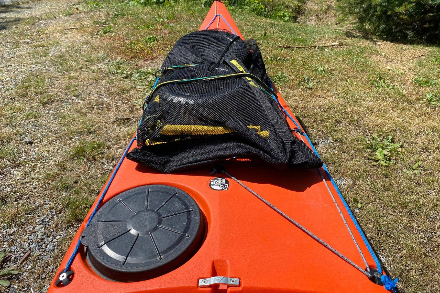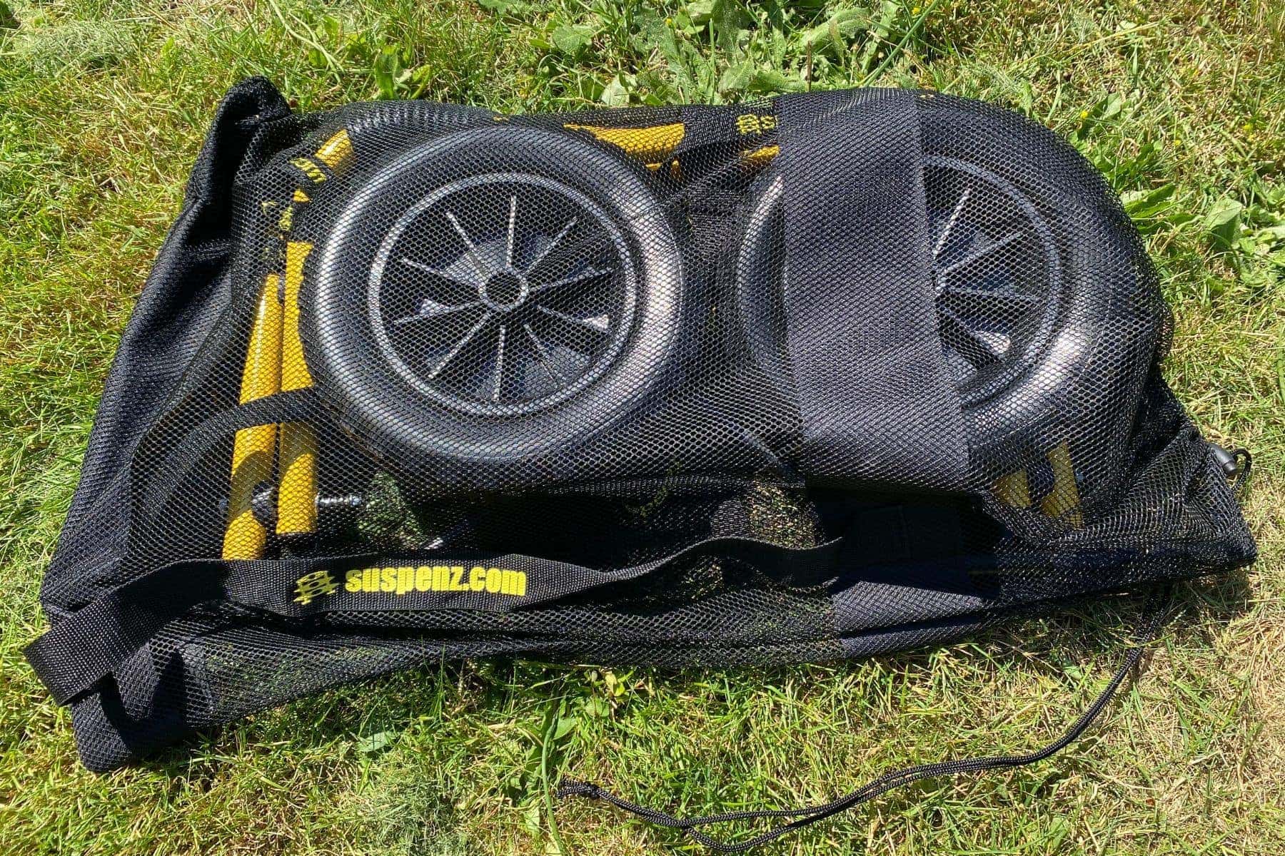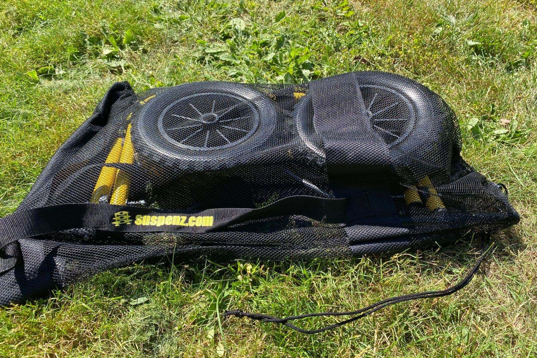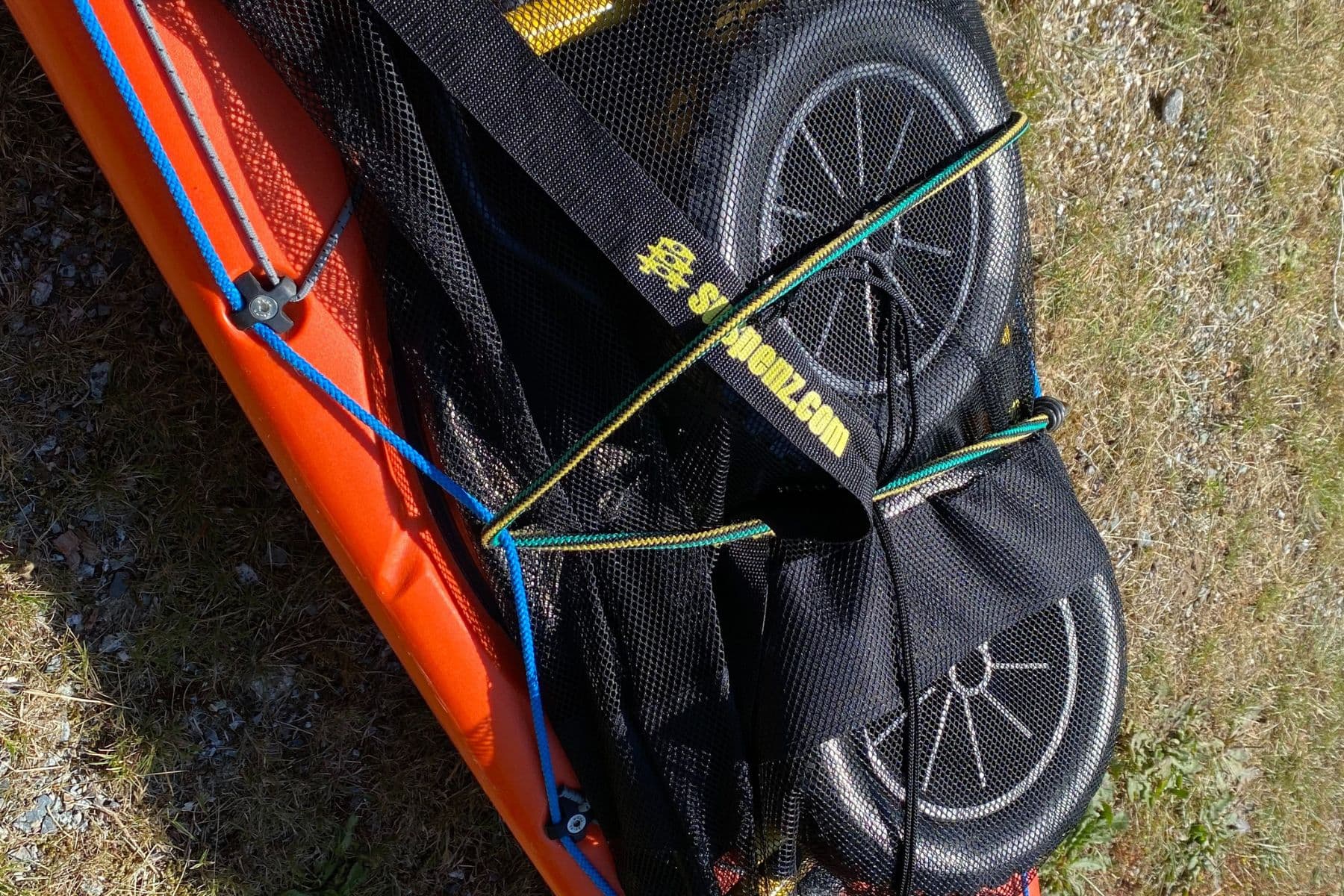 The mesh carry bag is useful to conveniently store and transport the cart when disassembled. The only downside to this cart is that it doesn’t pack down small enough to fit in most kayak hatches. But the carry bag can also be used to keep the straps, wheels, and frame together when transporting the cart on the deck of your boat.