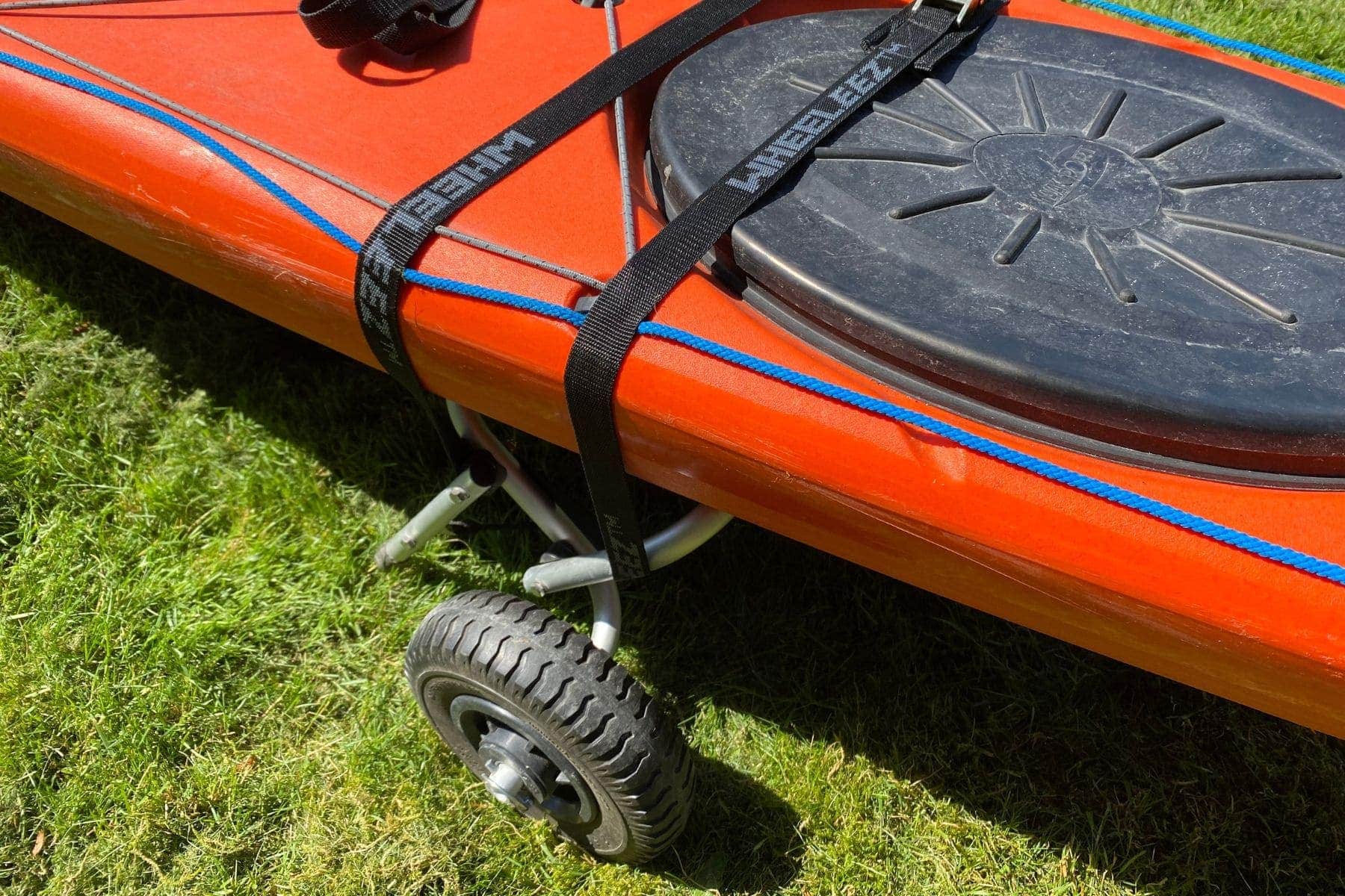 Despite its small size, the Wheeleez Kayak Cart Mini can still transport loads up to 121 lbs., which is sufficient for most loaded single kayaks. A fully-loaded tandem kayak might be a challenge, as would a heavily-loaded canoe, but I’ve seen these wheels transport sea touring kayaks loaded with gear on and off ferries multiple times.