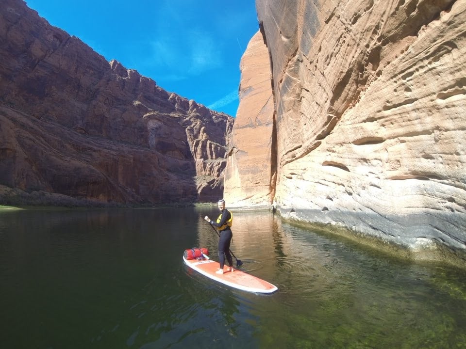 Paddling well, this float can be done in one, 7-8 hour, day. Or, pack for a more leisurely overnight tour and camp along the banks of the Colorado at multiple, free, first-come-first-serve campsites. A shuttle boat drops you off upriver within earshot of the Glen Canyon Dam at Lake Powell, then paddle with the current at a pleasant pace–enjoying paddle board-friendly rapids and occasional motorboat wakes–to your eventual landing back at Lee’s Ferry.