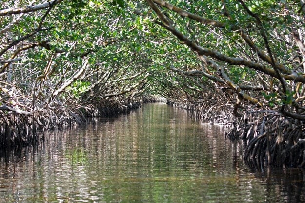Mangroves–tidal swamps made of tropical vegetation by the same name–populate vast areas of Florida Keys coastline, creating other-worldly paddle boarding playgrounds. The density of these shady lanes provides protection from the harsh Florida sun and heat for you and thousands of birds and aquatic species like barracuda, octopuses, and manatees.
