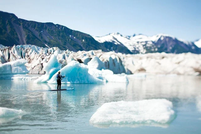 It’s natural for most SUPers to have a “swimsuits and suntans” mindset, but navigating the icebergs of Bear Glacier will provide you with a brand new outlook.